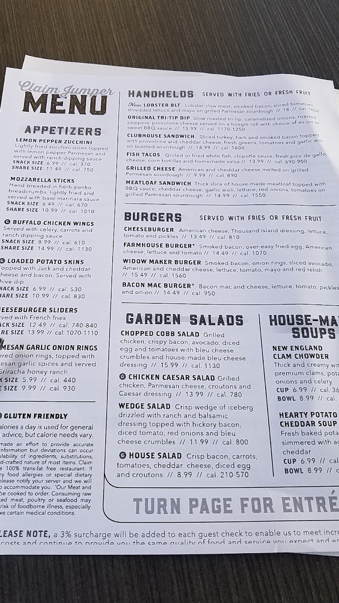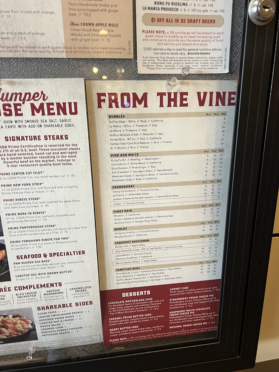 Claim Jumper Steakhouse & Bar - San Diego, CA Menu